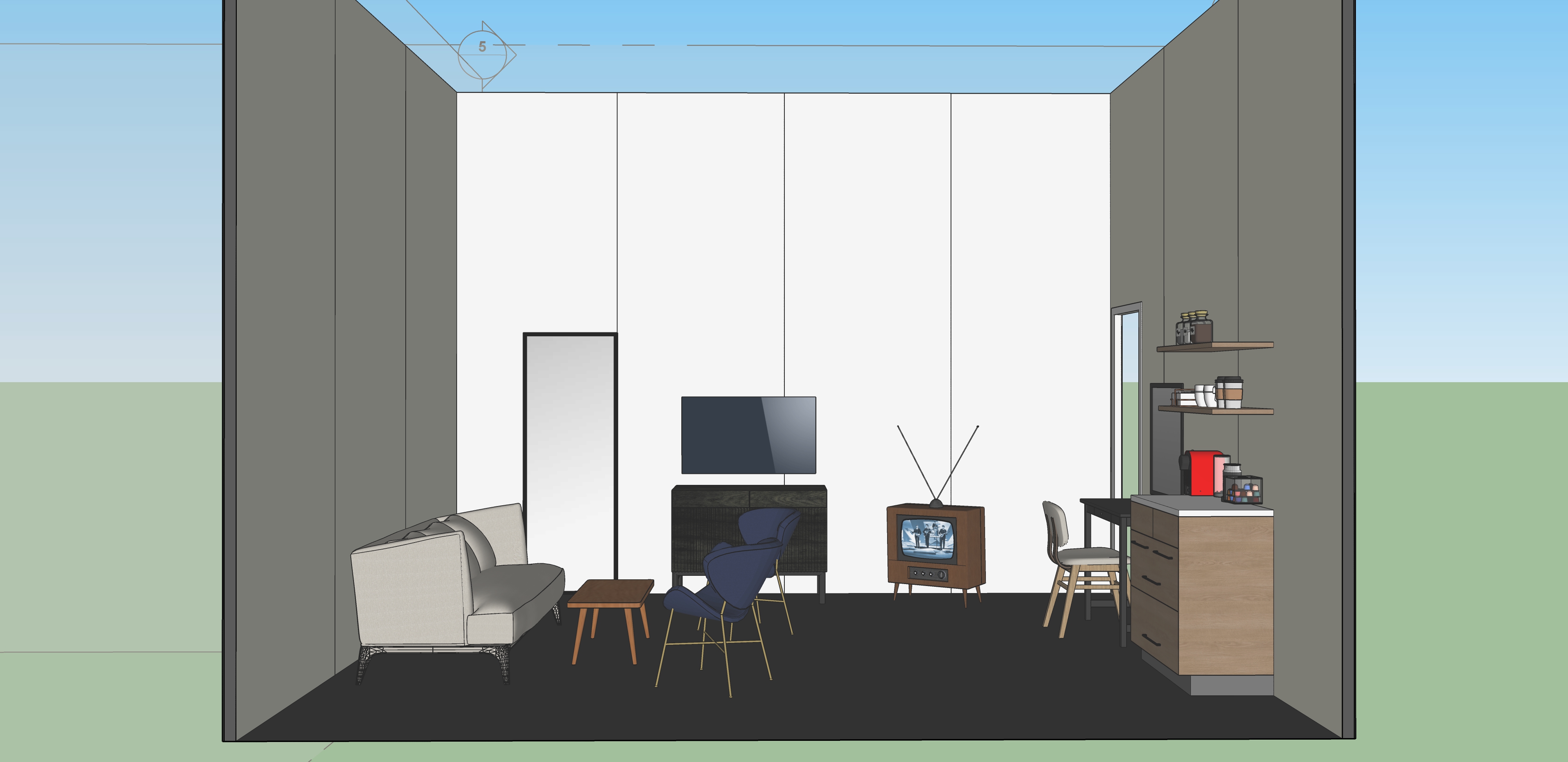 Des sièges ne sont pas nécessaires, car le public sera principalement debout et en mouvement, mais il est envisageable d’en ajouter sous forme de chaises, de bancs ou de coussins pour plus de confort et pour le public à mobilité réduite.
