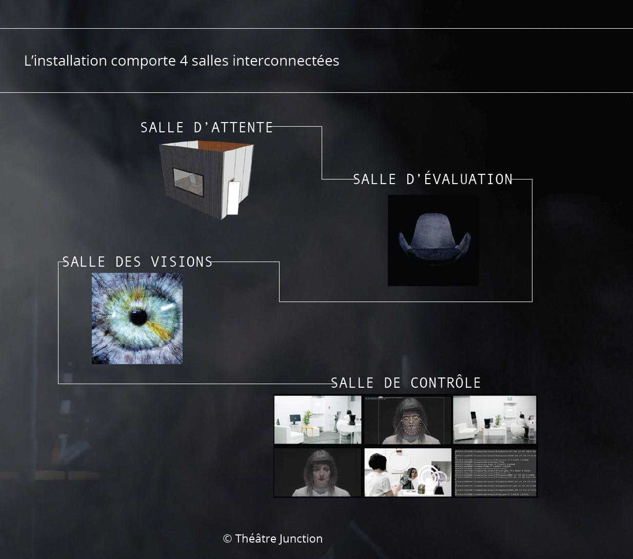 Le public est invité à entrer dans une salle d'observation, et à regarder dans un espace apparemment privé à travers un miroir sans tain. Ce dispositif met en lumière nos tendances humaines à la curiosité, et à notre désir d’observer en tant que voyeurs qu’exploite la notion même de surveillance. Les spectateurs sont invités à prendre de cette pulsion en observant 3 protagonistes : la Voyageuse 1, le Voyageur 2 et la Voyageuse 3 qui apparaissent et disparaissent tour à tour, revenant d’une expérience mystérieuse. Ce manège éveille la curiosité des spectateurs qui sera invité à suivre physiquement le parcours de l’un de ses Voyageurs à travers l’installation.